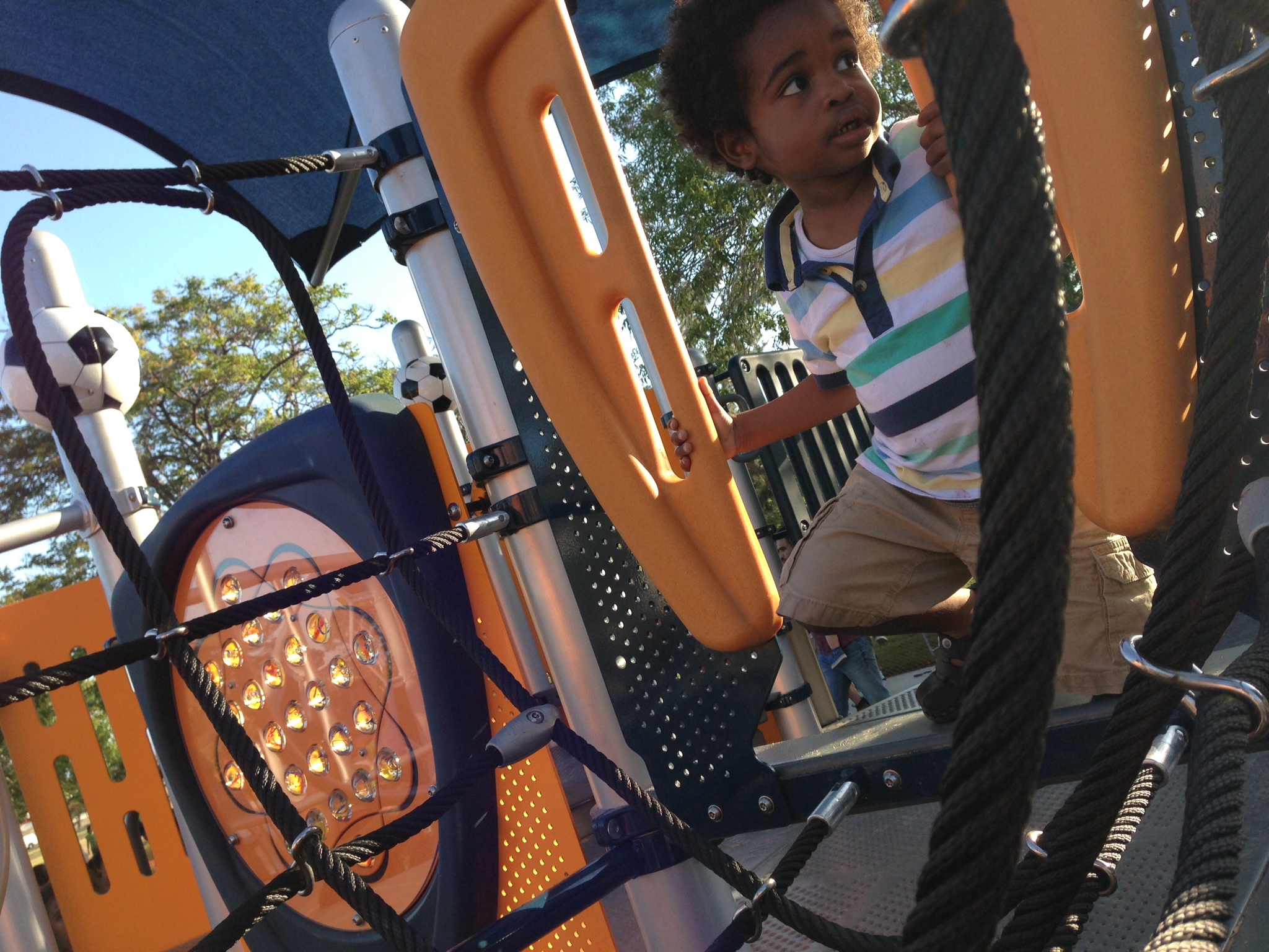 Our first serendipitous trip to the park during traditional school hours after a summer of packed out playgrounds was glorious.  We had the place to ourselves and the kids took full advantage of the empty jungle gyms.  I took to a blanket and a $5 pizza and we were gone before the after school crowd rolled in.