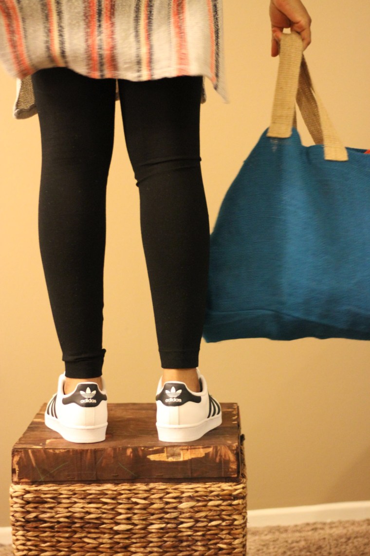 Well, the outfits featured in this new episode are a throwback to the 80’s and 90’s.  I chose these items solely because they perfectly complimented one thing:  My Shell Toe Adidas.  I have wanted these classic Shell Toes for years but never bought them.  They were too expensive. I didn’t really need them. Those were my 2 common excuses. But I finally got them for my birthday. (thanks hubby). Something I’ve always wanted!